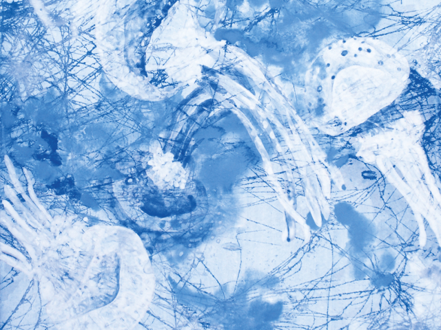 風に揺れる花に大いなる大気の流れを感じ、群れ泳ぐ海の生物には壮大な海流をイメージする。自身の心に秘めた想いを込め制作しています。